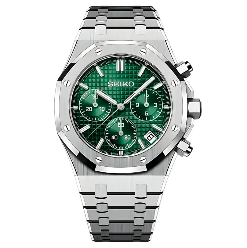 Inspired by the iconic Royal Oak design, and featuring the prestigious Seiko VK63 hybrid movement, we present the Seiko Mod Royal Oak. A 41 mm high-end quality watch combining the perfect alliance between excellence and accessibility.