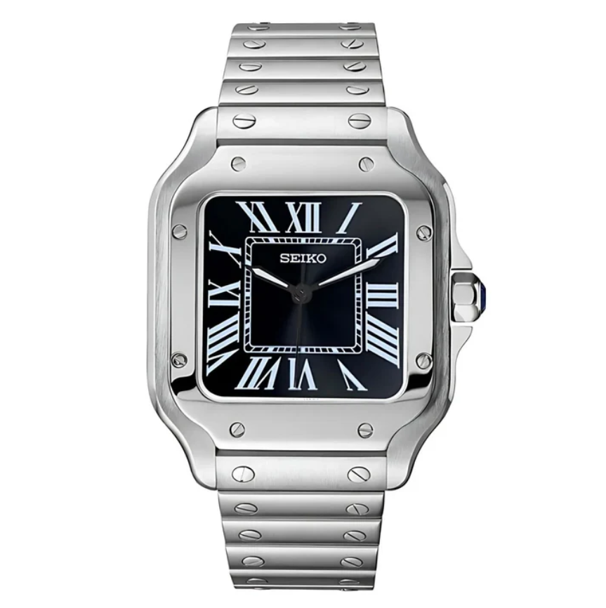 Inspired by the iconic Santos design, and featuring the prestigious Seiko NH35 automatic movement, we present the Seiko Mod Santos. A 38 mm (looks like a 41mm) high-end quality watch combining the perfect alliance between excellence and accessibility.